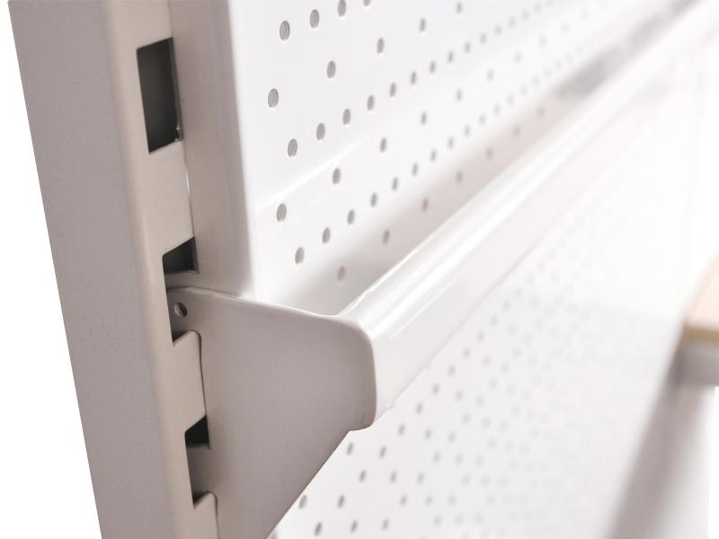 ● Slatted Wall Shelves: Slatted wall shelves are great for displaying products that don’t easily hang on hooks. They provide a flat surface on which items can be displayed neatly, creating an organized and visually appealing display.